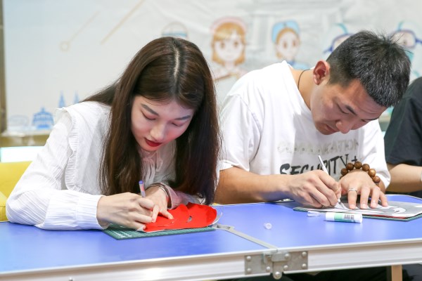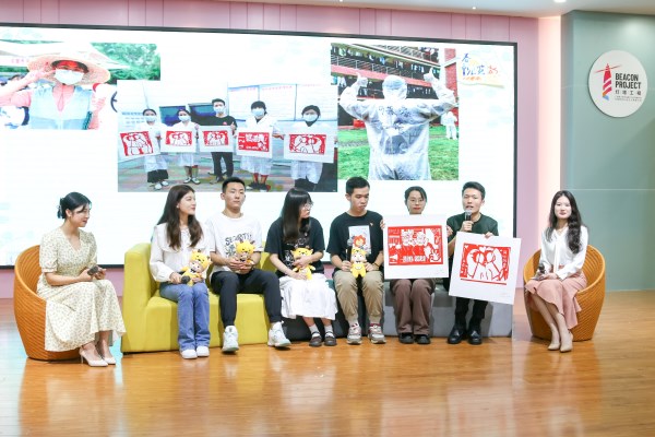 在活动现场,6位同学再一次用刻纸艺术传递青年抗疫信念。三幅合力而成的刻纸作品表达出“青”尽全力、“湛”疫有无、我们能赢的美好愿望。