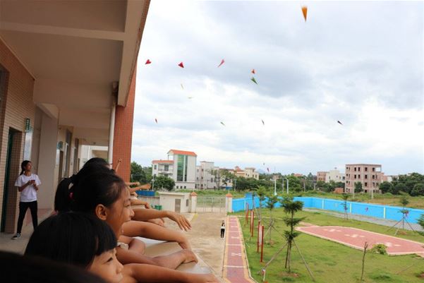 一改平日喧哗的场面,此时只听见孩子们笔尖划过纸张的声音,写完之后,在孩子们自己的努力和老师的帮助下,一张张五颜六色的纸变成了一张张写满了孩子们梦想的纸飞机。接下来,到了孩子们翘首以盼的重要环节——在课室外面放纸飞机。在老师们的组织下,同学们有序地站在安排好的位置上,等待着队长下达命令。终于,随着队长响亮的口令,满载孩子们梦想的纸飞机划过天际,形成了一道道美丽的风景。/files/2018/7/files/20180716230532929.jpg