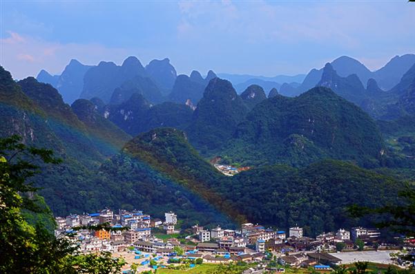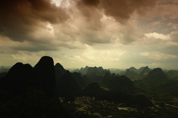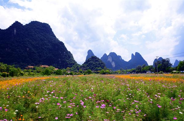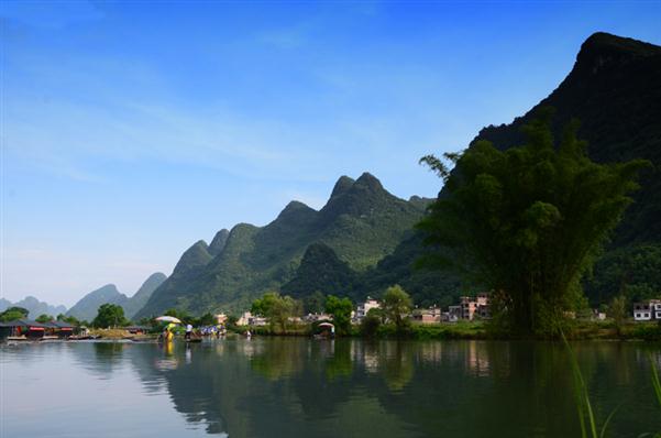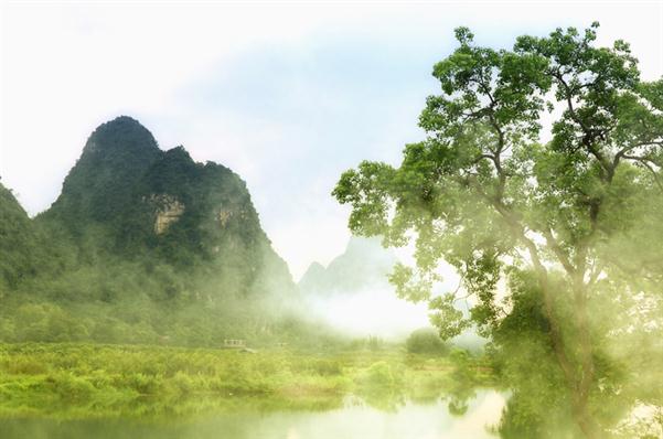 望不尽千姿万态独秀峰,恰似漓江春水浓。两处怎比阳朔好,碧莲峰里住人家。 桂林山水——甲天下......