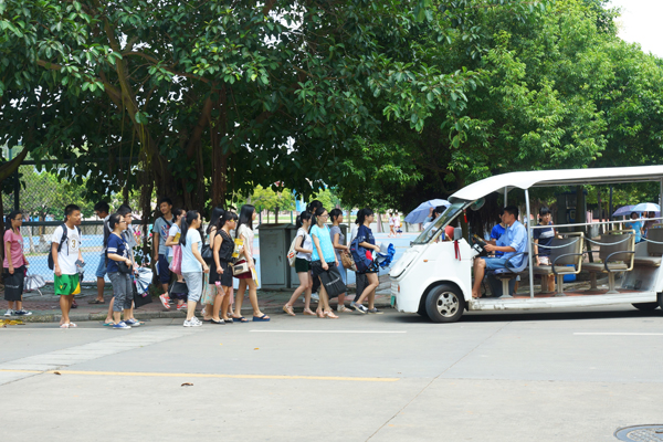 可是在海大,貌似没有啥候车厅,排队区之类的设施吧?但是海大的师生就能够规规矩矩的排队。是湛师人的素质比不上海大?还是别的原因?我不知道…