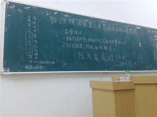在推开门,走上讲台的那一段路。我的心扑通扑通跳个不停,我甚至不知道下一步我该干嘛,也不知道我会不会紧张的无法言语。可是,当我真正站在讲台上的时候。突然之间,我的心跳平和了,我的大脑也思路清晰。在黑板上写下自己的大名后,我开始了30秒的自我介绍。这一段挺顺利的,只是接下来的90朗诵。我可失了魂……