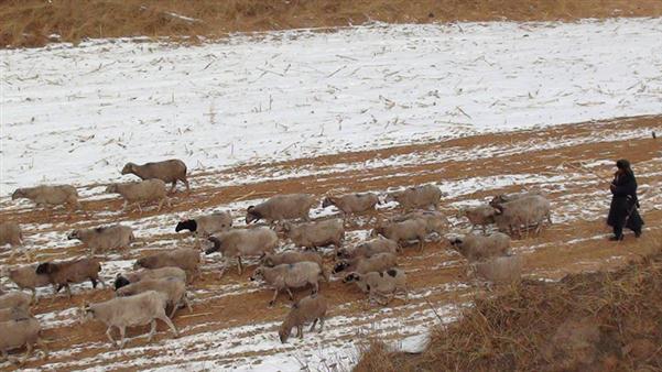 沟壑间,在牧羊人的驱赶下羊儿不失欢乐,与小伙伴一起快乐玩耍