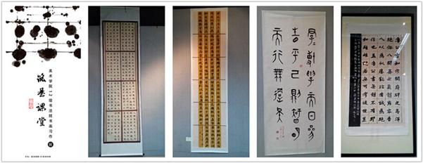 终于,在同学们和老师们的共同努力下,12级书法班筑基课堂习作展今天拉开了序幕。看着那么多的同学‘爬’上五楼展厅观看我们的作品,自豪感油然而生。看到老师们一幅幅讲解、点评我们的作品时满意的表情,自豪感更是满足得难以附加。那一刻,突然间觉得一切的努力和付出都是值得的。
