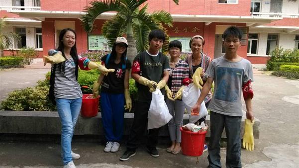 时间很快就过去,而我们也很快完成了任务。此时,脱下手上的手套,里面全是汗水,这些可是我们在烈日付出劳动的见证,我们汗湿衣衫为的只是让校园这片土地不被污染,我们空着肚子的劳动是为了让他人有一个美好的环境可以漫步在校园的每一个角落。其实,在劳动中我体会到的是一种美好,那种为人服务的感受我想是难能可贵的。而今天的心情也是格外爽朗。被定格的那些瞬间是我们最美的姿态,这劳动我们将永远铭记,并且持之以恒。衷心的希望更多的志愿者加入这些志愿服务。最后还是呼吁:为了我们和谐美好的校园,为了我们美丽可爱的家园,请慎重扔出你手中的垃圾,轻轻的把它带到属于它的地方吧,让自己高尚,创美好湛师。