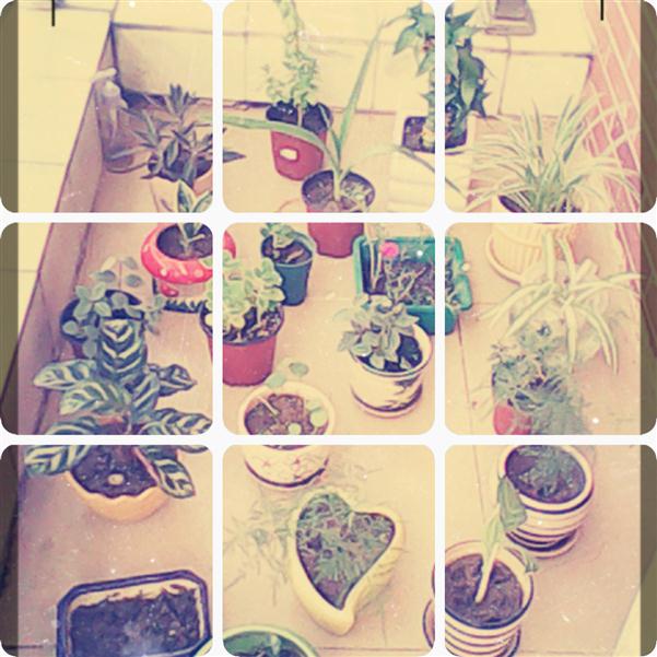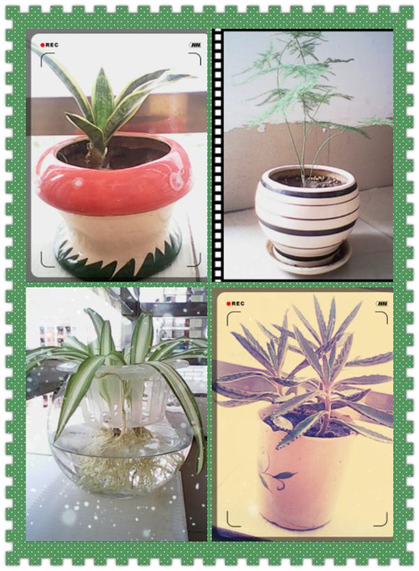 这就是我们宿舍阳台的一个缩影,里面的每一盆花花都是我亲手种的。简单介绍一下这个大家庭吧,有长春花、富贵竹、落地生根、金边虎尾兰、碰碰香、孔雀竹芋、吊兰、文竹、白柄粗勒草、铜钱草、太阳花,还有一种,不过忘了叫做什么了……种类还是相当的丰富滴!