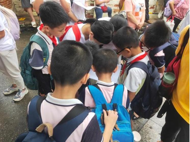 小朋友们还没有放学,我们就在校门口等待。听到小朋友们的欢声笑语,我不由沉浸在自己简单又幸福的童年,无忧无虑的美好时光。等了一会儿,下课铃声响起,零星几个小朋友拿着行李出来,应该是考完试放假了吧。再过了一会儿,我们实践队队员们上前邀请小朋友填写问卷,小朋友们积极热情地答应了。看到队员们积极热情地与小朋友们交谈,我心生羡慕,渴望自己也可以积极主动一点,活泼一点点,能主动与小朋友们谈话,完成我手中的第一份问卷。队员小肖也鼓励让我主动勇敢一点,然后她找到刚刚填过问卷的小朋友,让他帮忙介绍他的同学给我,小朋友二话不说立马就拉我到他的同学面前。感受到小朋友温暖的小举动,我的内心触动,我在心里默默地说谢谢你小朋友。