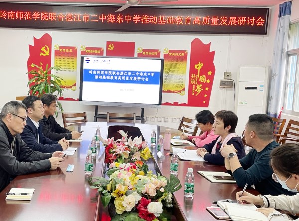 为深入贯彻中央关于建设高质量教育体系的决策部署,全面落实省委、省政府关于推动基础教育深化改革高质量发展的工作要求,推进《岭南师范学院赋能基础教育高质量发展行动方案》,全面实施“三成四化”筑峰工程,紧密对接粤西基础教育高质量发展的实际需求。4月19日,法政学院副院长娄伟、历史系主任景东升、思政系主任谢锦江、辅导员孟玉新等人赴湛江市二中海东中学开展基础教育高质量发展专项调研。本次调研活动以座谈会的形式开展,法政学院一行以及湛江市二中海东中学校长张筱柳及其相关科室负责人参加了本次座谈会。