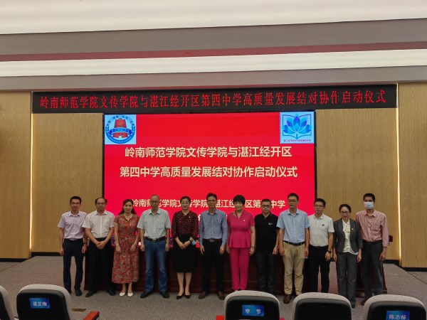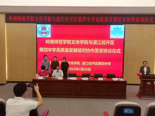 启动仪式上,岭南师范学院文学与传媒学院院长阎开振和经开区四中校长李节代表双方签署帮扶协议。双方将在未来五年建立教育协作、共建共享的帮扶机制,充分发挥高校在科研、人才、资源等方面的优势,为中学在品质学校建设、品质课程建设、协同教研建设、师资素质等全方位提升,以及学生课后服务等方面提供智力支持和资源条件。学院党委书记陈凯珍代表学院向经开区四中赠送了该院教师的专著和文学作品集。史习斌教授为经开区四中师生做了题为《诗歌写作五台阶》的讲座,开启了该院设置在经开区四中“教授博士中小学讲坛”的第一讲。经济开发区教育局副局长沈国强出席启动仪式,见证双方的协议签订,并高度评价双方的合作。