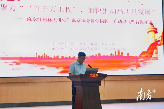 本次在麻章镇设立的分讲堂,由麻章镇与岭南师范学院合作共建。岭南师范学院生命科学与技术学院党委书记李发武表示,学校将在农业生产、海洋养殖、乡村规划、园林绿化、基础教育、红色基地等方面,助力麻章镇走上高质量发展道路,共同努力打造麻章镇天蓝、地绿、水清、景美的生态画卷,推动“百千万工程”在麻章镇落地生根,为推动湛江的绿美建设作出岭师贡献。