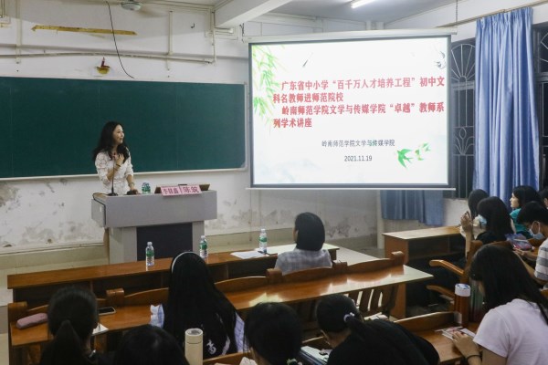 本次讲座是广东省“百千万人才培养工程”初中文科名师进师范院校系列活动,以及岭南师范学院文学与传媒学院“卓越教师”系列活动之一。