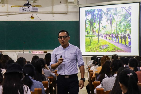 11月19日晚,广东省“百千万人才培养工程”初中文科名教师培养对象深圳市教育科学研究院初中语文教研员、高级教师李燚鑫,深圳市盐田区外国语学校语文高级教师、南粤优秀教师陈筑在弘雷楼503课室为文学与传媒学院近二百名师范生作题为《“语文教师专业成长”名师二人谈之一》的讲座。文传学院党委副书记梁碧斐出席讲座。