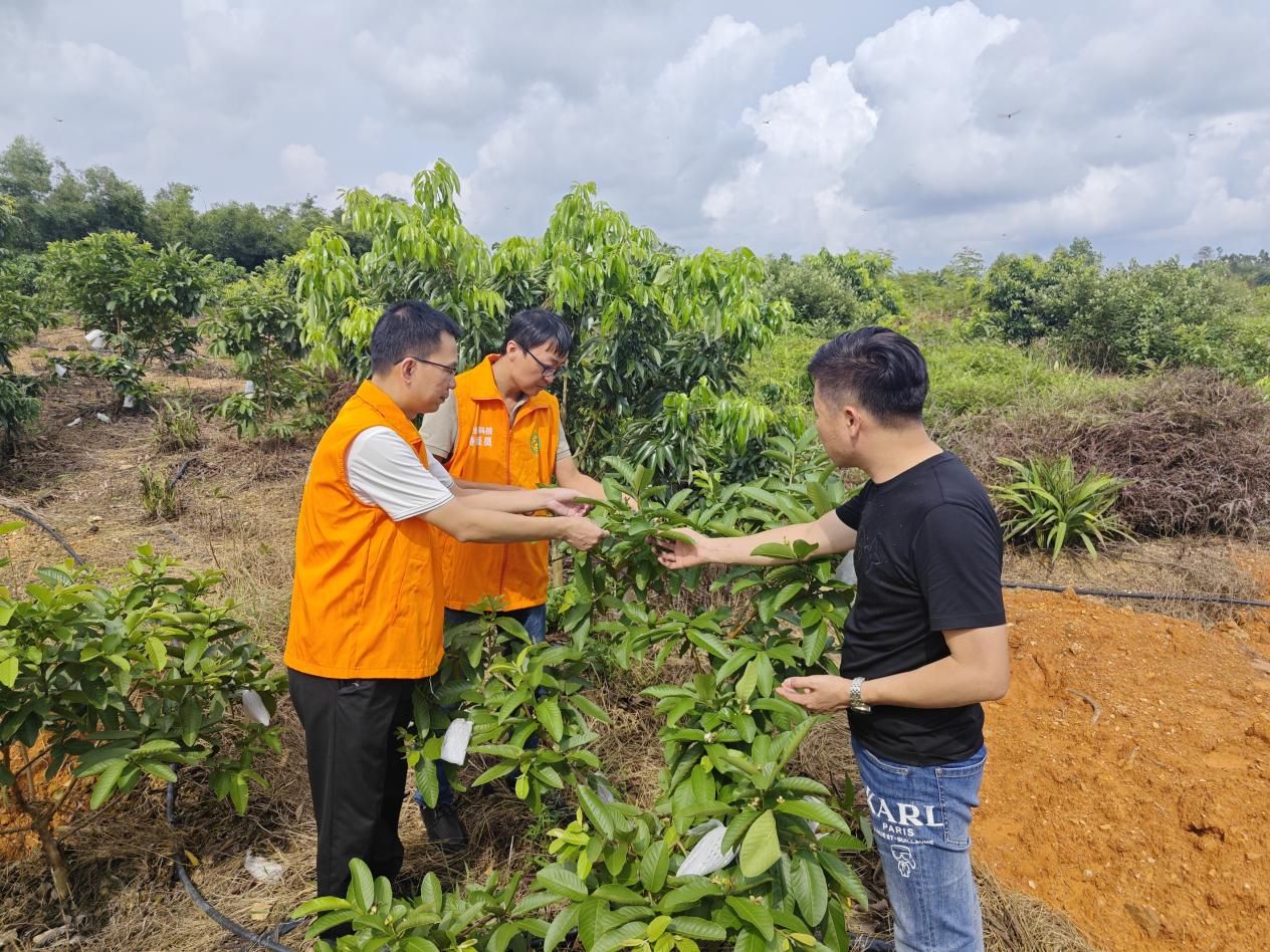 抵达上井村后,服务队第一时间深入湛江市上井生态农业科技有限公司的番石榴种植基地。面对郁郁葱葱的果园,专家们细致入微地观察每一株番石榴的生长状况,特别是针对当前存在的炭疽病问题进行了全面排查。刘锴栋院长亲自示范,如何通过叶片颜色、果实形态等细微变化判断病虫害类型,并现场指导公司负责人如何采取生物防治、物理隔离等绿色防控措施,减少化学农药使用,保护生态环境。