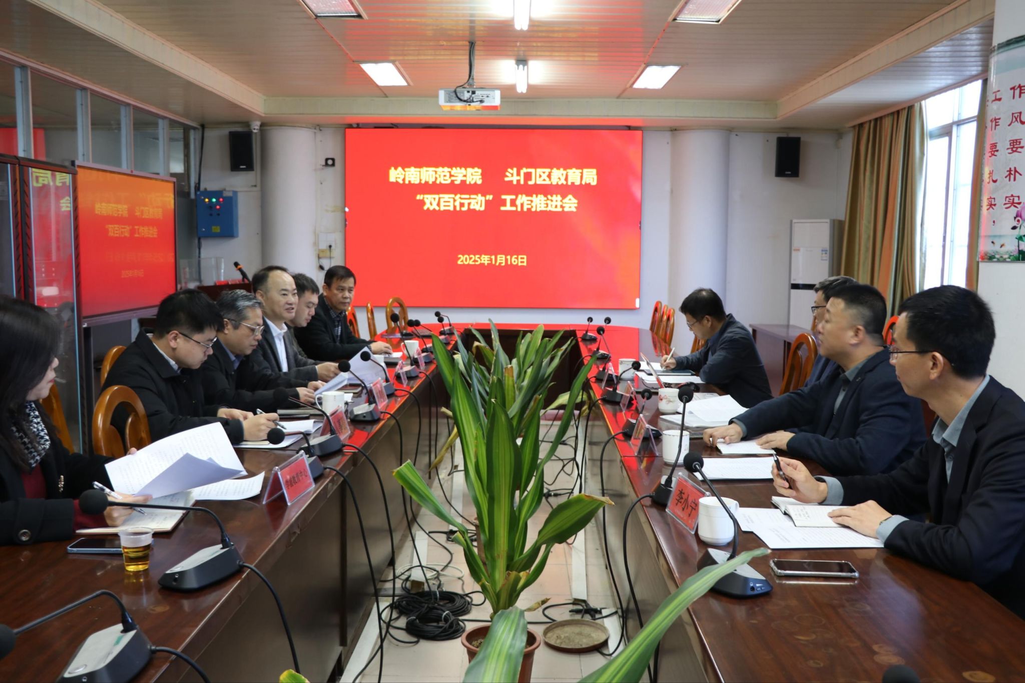 为深入贯彻落实“双百行动”结对共建工作要求,进一步落实《广东省百校联百县助力“百县千镇万村高质量发展工程”行动协议书》相关要求和斗门区“双百行动”结对共建2025年第一次工作联席会议精神。1月16日,岭南师范学院教务处与斗门区教育局在斗门区教育局举行了“双百行动”工作推进会。