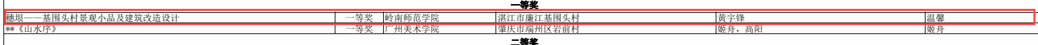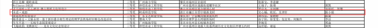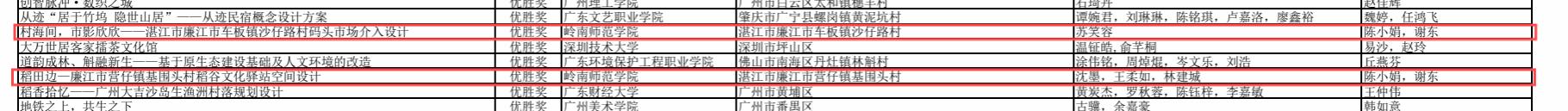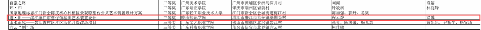 近日,广东省“双百行动”乡村建设规划高校联盟公布了2024年度广东省高校“乡村创新”艺术设计大赛获奖情况,我校学子在本次活动中斩获多个奖项!学校共11项作品获奖,其中一等奖1项,二等奖1项,三等奖3项,优胜奖6项。