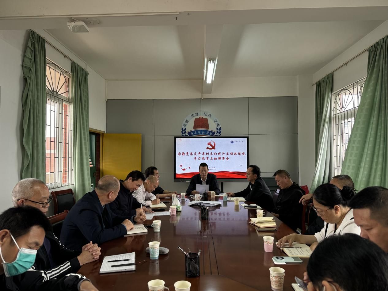 3月9日上午,后勤党总支在紫荆楼五楼后勤党员活动室召开树立和践行正确政绩观学习教育启动部署会,深入学习中共中央办公厅《关于在全党开展树立和践行正确政绩观学习教育的通知》要求,传达中央、省委党的建设工作领导小组会议和学校开展树立和践行正确政绩观学习教育启动部署会精神,部署后勤开展学习教育工作。后勤党总支书记李炳富主持会议。
