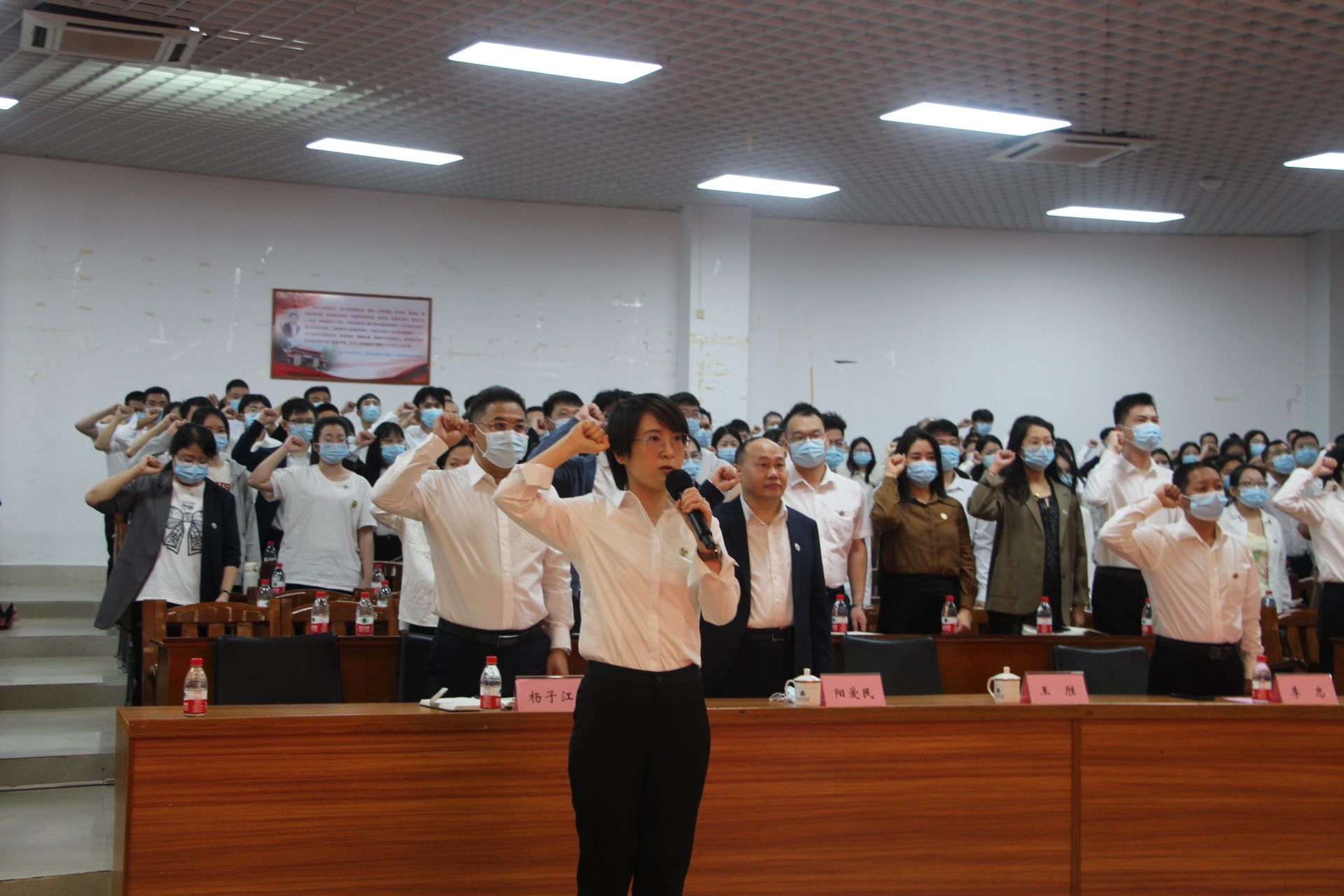 学校212名新入职教职工参加开班典礼并庄严宣誓;新入职教工王邓博士作代表发言。