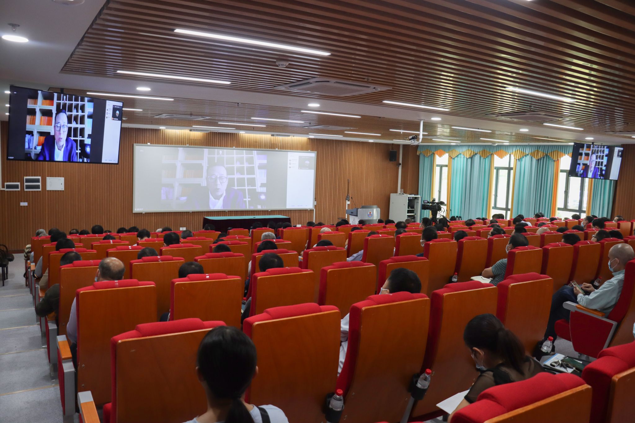 广东财经大学粤港澳大湾区资本市场与审计治理研究院首席专家张庆龙教授以“线上”方式作专题报告(马育坤 摄)