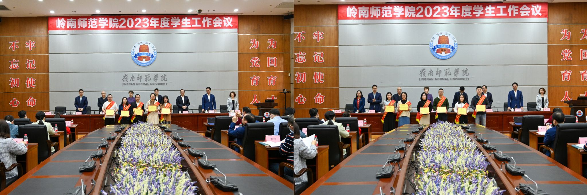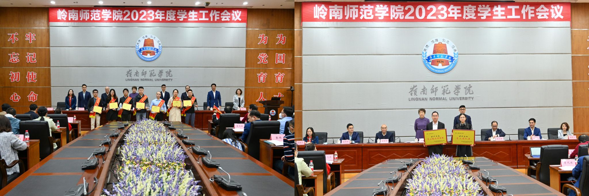 兰艳泽、黄达海为荣获学校2022年“标杆岭南”学工盛典奖项的先进集体和个人颁奖