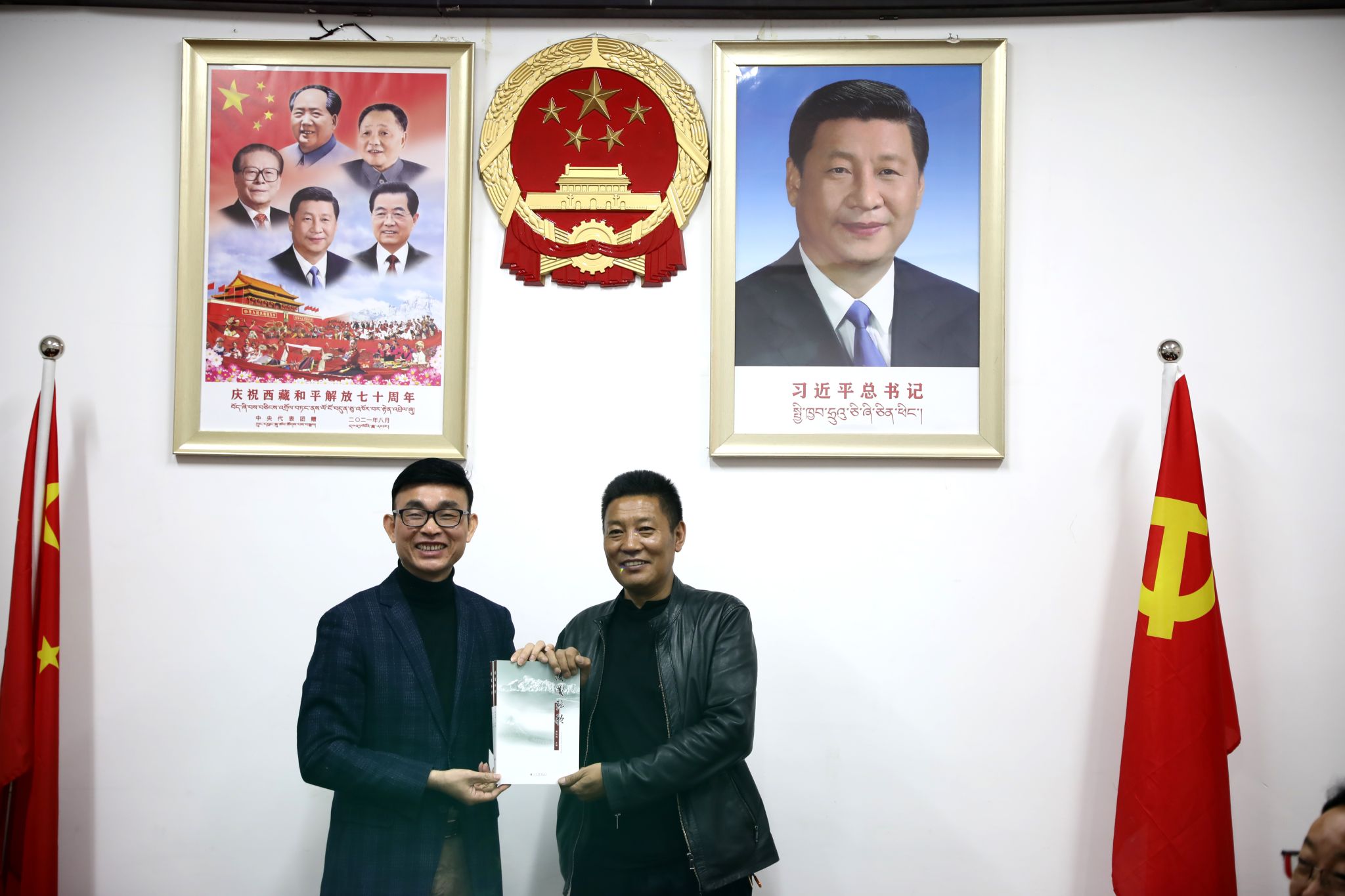 黄达海向工布江达县教育局局长多吉才旺赠送《援藏弦歌》书籍