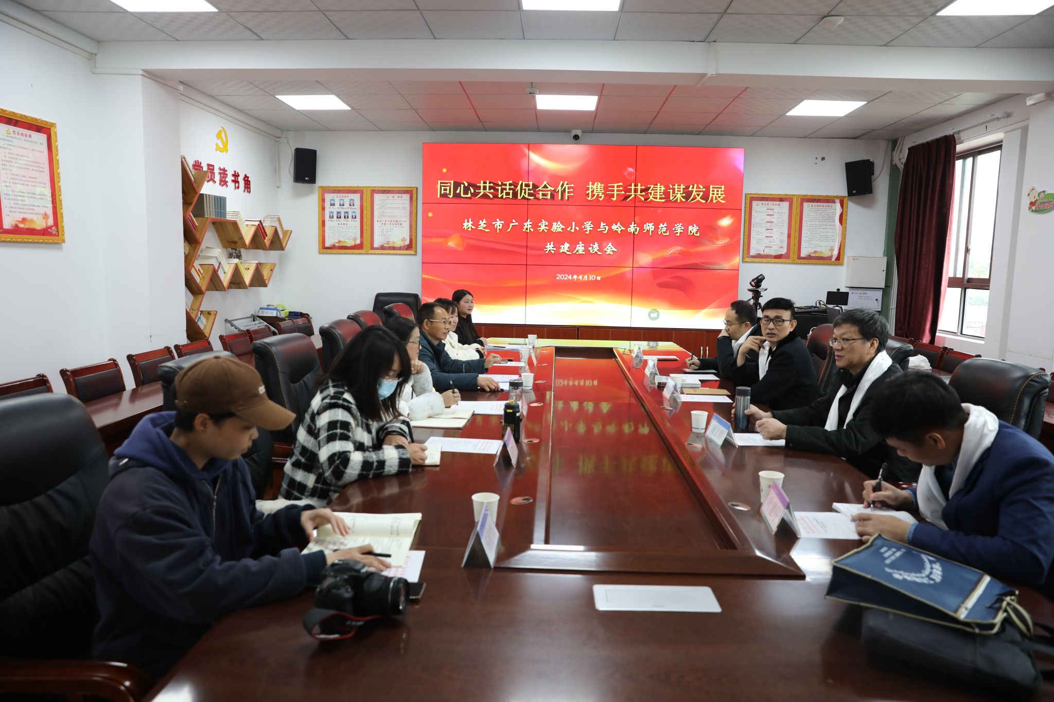 “一校一品,这个好,赶快记下来!”“课后服务科学化,这个也好,记下来!”……在4月10日与林芝市广东实验小学进行的共建座谈会上,该校党总支书记欧国安边听岭师赴藏专家团成员介绍“三成四化”的每个具体项目介绍,边吩咐身边参会的该校副校长姚丽娜记下自己感兴趣的项目。他说,自2009年该校建校伊始,岭南师范学院便与该校签订对口帮扶协议书,截至目前,历经十四年。期间,岭南师范学院多次通过物资援助、资金援助、师资培训、送教上门、共建书香校园等多种形式持续与该校开展共建。 “非常荣幸的是,今年3月岭南师院党委书记兰艳泽与我校签订签署赋能基础教育发展高质量发展行动之新时代教育援藏研究项目合作协议。这对于我校教育事业的改革发展具有举足轻重的地位和特别重要的意义,具有‘里程碑’式意义。”