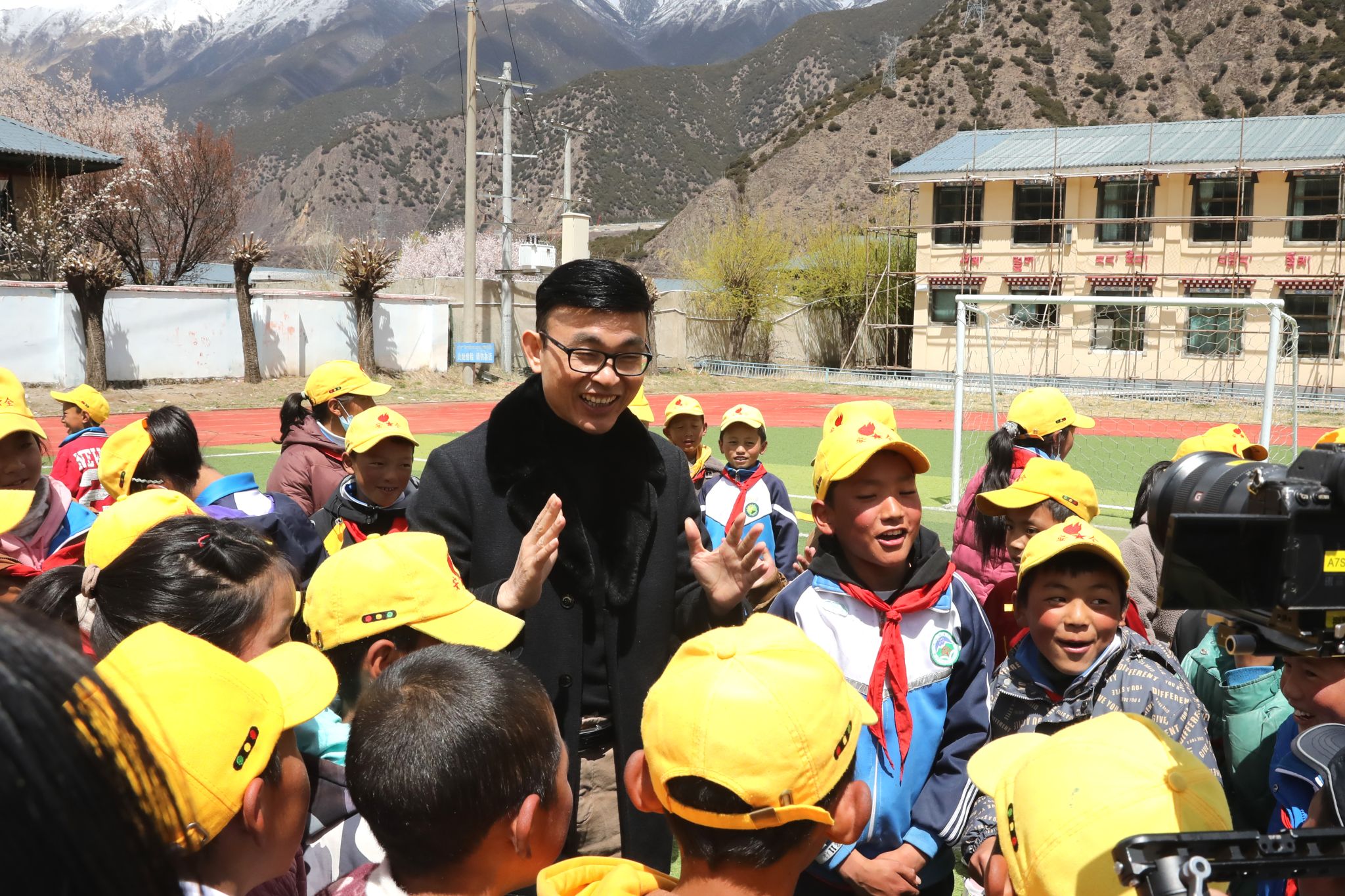 “你的手是不是冻裂的?脸蛋上的红色部分是不是高原红?”在林芝市广东实验小学,看到来这里支教的体科院学子马佳怡手上皴裂、嘴唇也略显干裂后,黄达海详细询问着来支教后的生活以及住宿等情况,叮嘱他们支教生活中要注意身体健康。