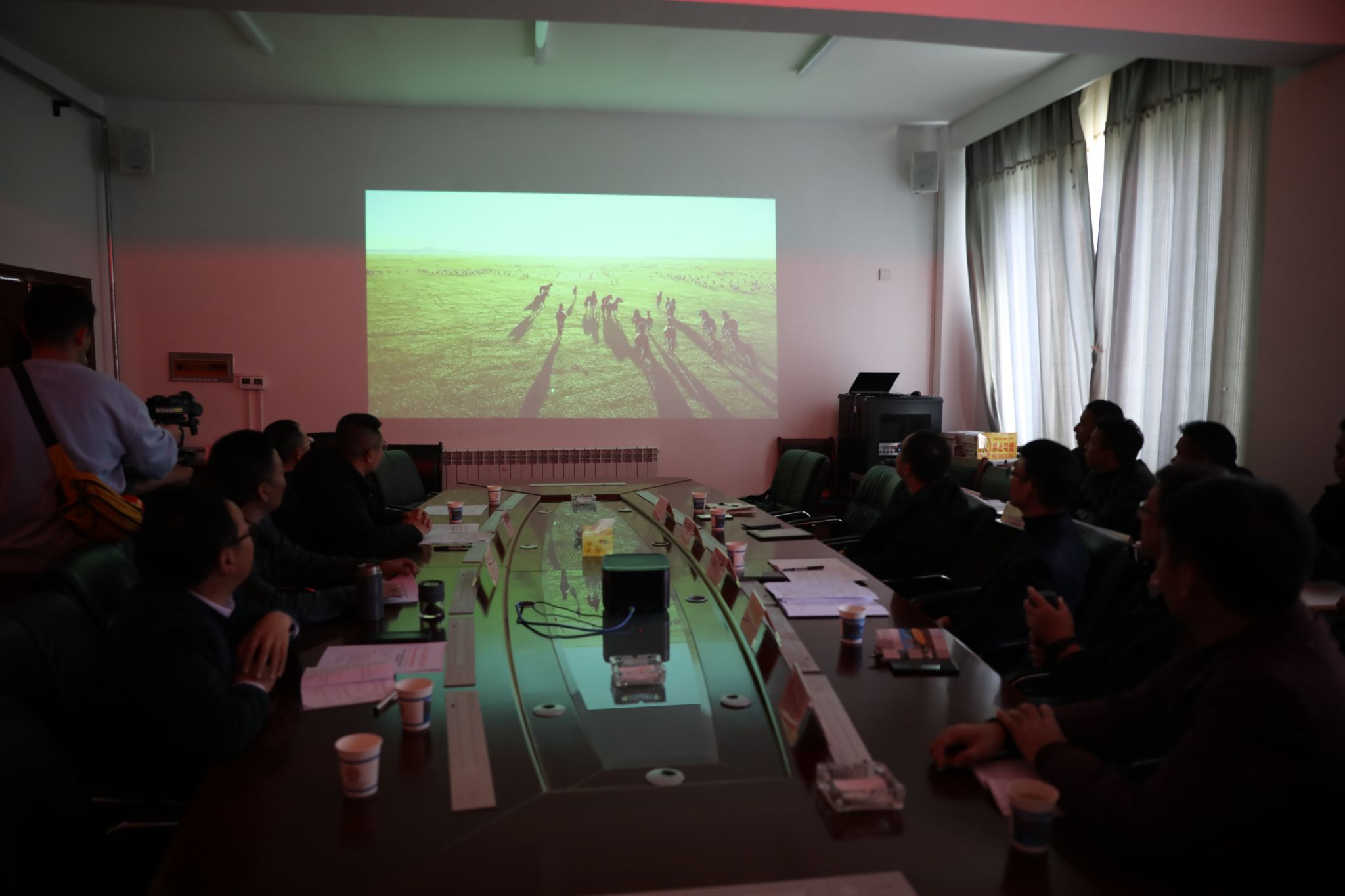 在工布江达县座谈会上一起观看《援藏良驹》微电影