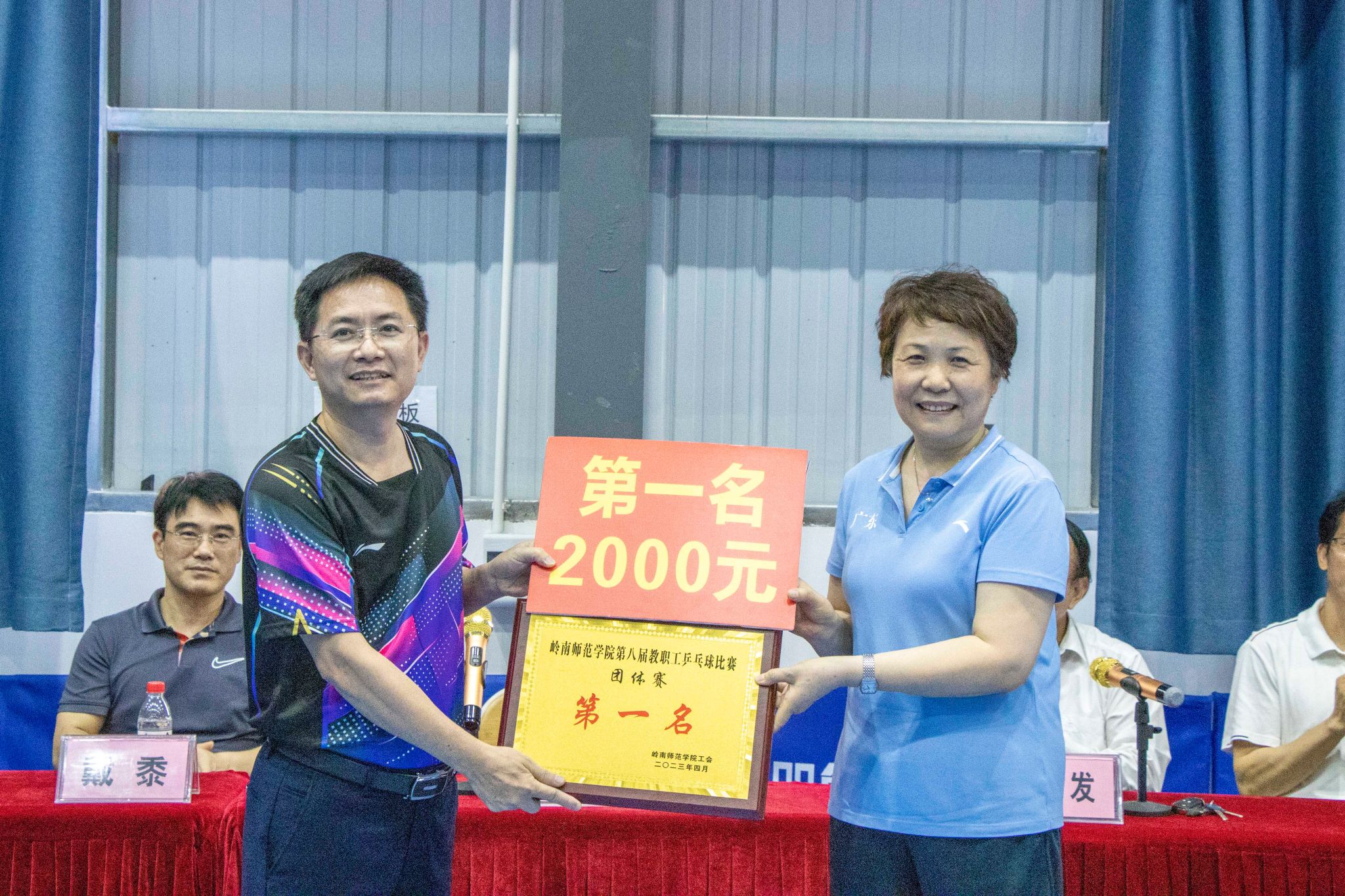 “本次比赛具有参赛队伍多、人员多、大家热情高涨的特点,真正地赛出了风格、赛出了水平、收获了友谊”,在闭幕式上,兰艳泽书记对本次教职工乒乓球赛给予高度肯定。她指出,校工会举办的本次乒乓球赛是贯彻落实党的二十大精神、推进健康校园建设的具体举措。希望校内各单位及各级工会组织以本次比赛为契机,经常性地举办一些特色文体活动,引导广大教职工踊跃参加体育锻炼,让全体教职工把体育运动作为一种生活习惯,强身健体,更好地工作。同时也希望广大教职工以本次比赛为新的起点,发扬团结奋进、顽强拼搏的优良作风,立足岗位工作、争创一流业绩,努力服务学校发展大局,共同为我校高质量发展做出新的更大的贡献。