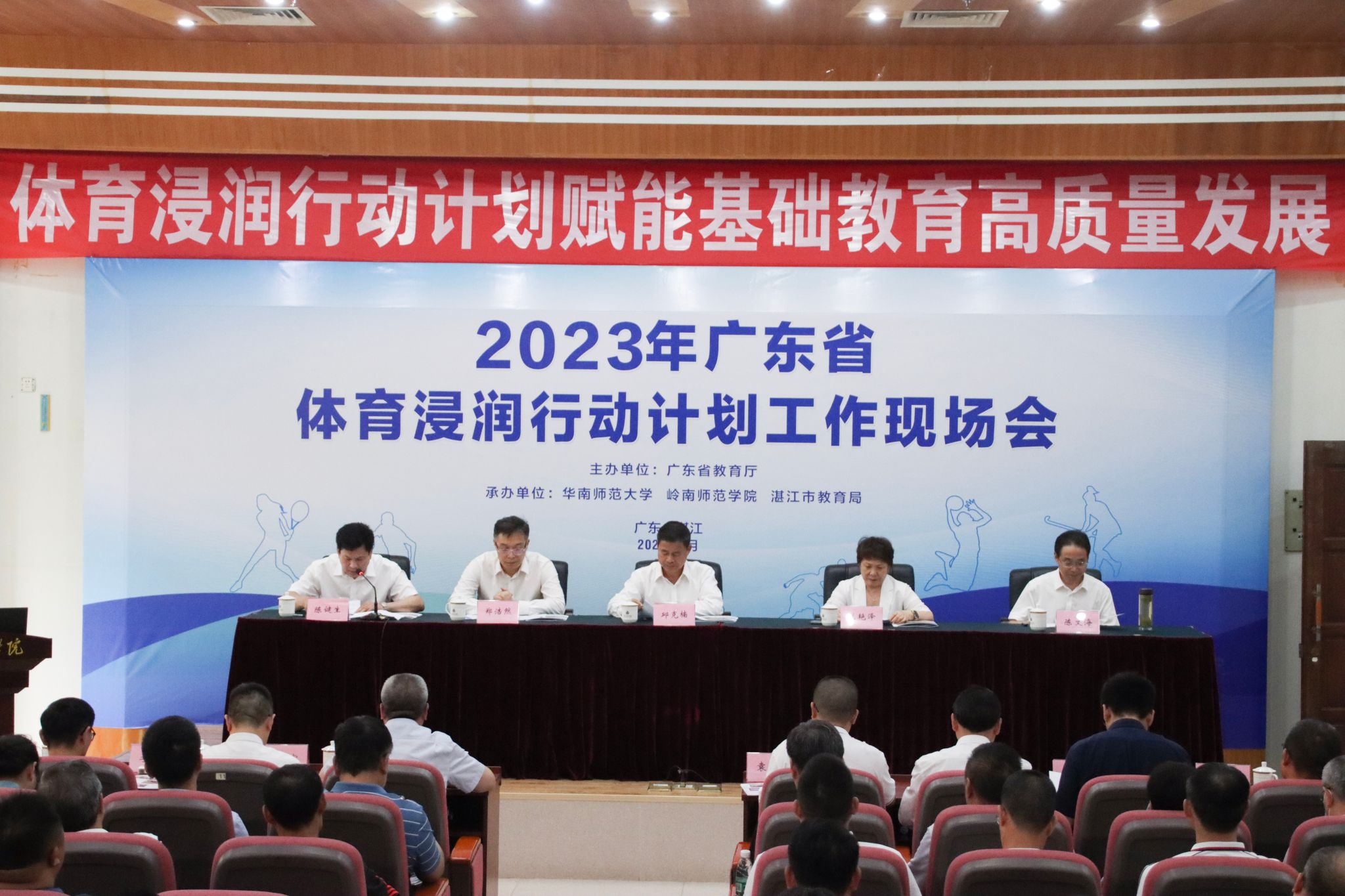 5月9日下午,广东省体育浸润行动计划工作现场会在岭南师范学院召开,旨在推动高校优质体育资源融入粤东粤西粤北的薄弱地区中小学校,改善广东省体育教育资源不均衡的现状,探索体育教育协同发展机制,形成具有突破性、示范性、引领性的举措和经验,推进新时代广东学校体育教育高质量发展。