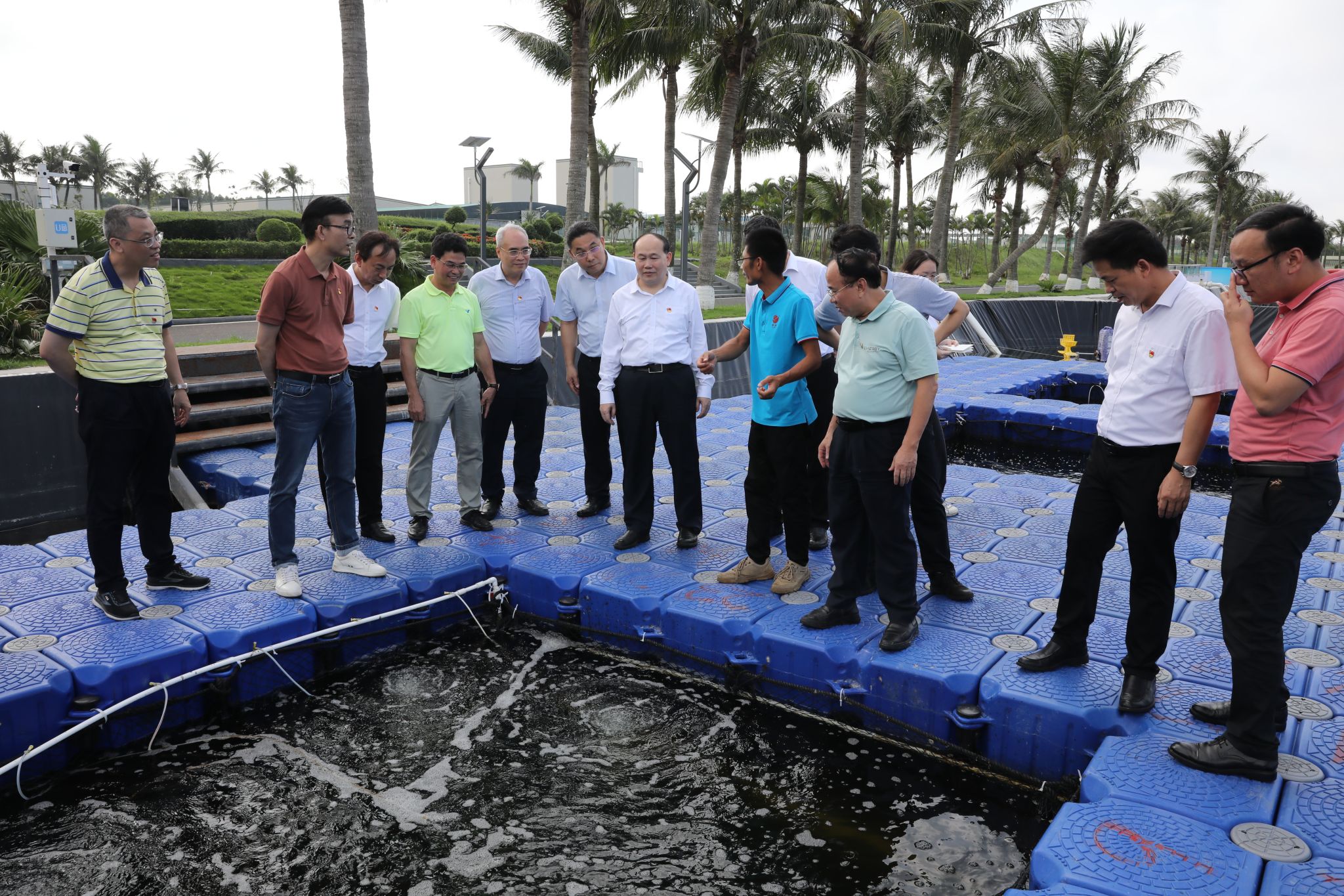 下午,学校党委理论学习中心组成员到达位于湛江市东海岛的国家863计划项目海水养殖种子工程南方基地,了解广东省海洋渔业发展情况,查看渔业良种展示,参观科研成果等。习近平总书记视察时曾说:“种业是现代农业、渔业发展的基础,要把这项工作做精做好。要大力发展深海养殖装备和智慧渔业,推动海洋渔业向信息化、智能化、现代化转型升级。”阳爱民表示,要贯彻落实习近平总书记重要讲话精神,依托学科专业和人才智力优势,发力深远海渔业养殖智能化、水产预制菜产业开发升级、海洋生物资源开发利用与保护、海洋防污防腐与清洁能源生产、海上风电机组健康监测与智能运维等领域,打造南海海洋经济的“蓝色引擎”,助力湛江海洋强市崛起及广东海洋科技创新,为湛江建设省域副中心城市、打造现代化沿海经济带重要发展极贡献力量,推动我国海洋事业高质量发展。