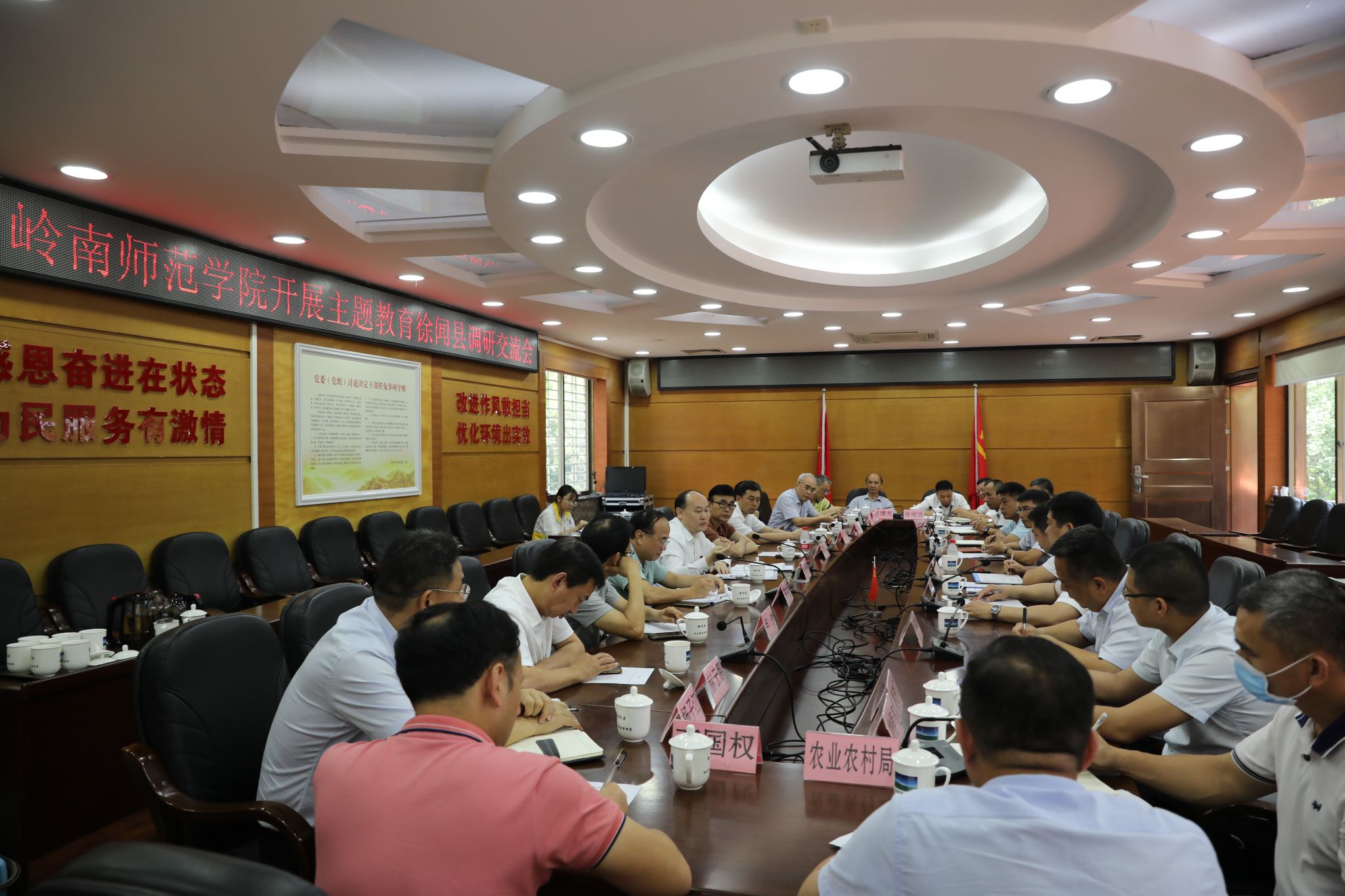阳爱民衷心感谢徐闻县委县政府对本次调研学习的大力支持,并转达了学校党委书记兰艳泽的问候。双方召开座谈会,共同学习领会习近平总书记视察徐闻时的重要讲话精神,并就赋能基础教育高质量发展、优势产业农业发展、现代化海洋牧场建设、广东·海南(徐闻)特别合作区建设等方面的合作进行了交流,发挥岭南师院人才、科技优势,助力徐闻做好“黄金水道”和客货运输最佳通道大文章,把徐闻港打造成连接粤港澳大湾区和海南自由贸易港的现代化水陆交通运输综合枢纽。“牢记x习近平总书记嘱托、感恩奋进,坚定扛起‘与海南相向而行’的使命担当,高标准建设广东对接服务海南自贸港的南门户城市,全力打造湛江与海南联动发展的先行区。”徐闻县委书记罗红霞表示。