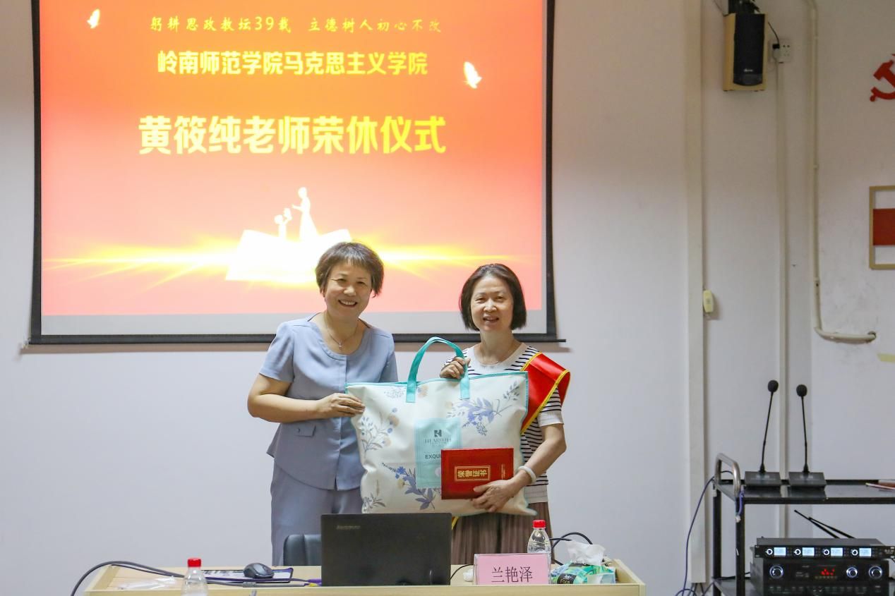 “感谢兰书记、感谢学校和学院!我从1984年7月毕业以后就来到雷州师专工作,从事思政课教学,一干就是39年,非常不舍我们温暖和谐的学院大家庭。”黄筱纯在个人感言环节表达了自己的感谢、不舍和祝福。