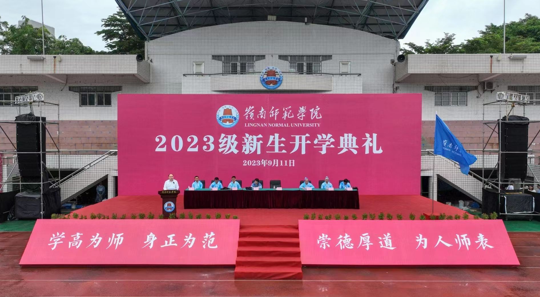 岭师新闻中心讯:9月11日,岭南师范学院2023级新生开学典礼在嘹亮的国歌中拉开帷幕。来自全国31个省(市、区)近9000名新生齐聚雷阳田径场参加典礼,共同迈上大学新征程。