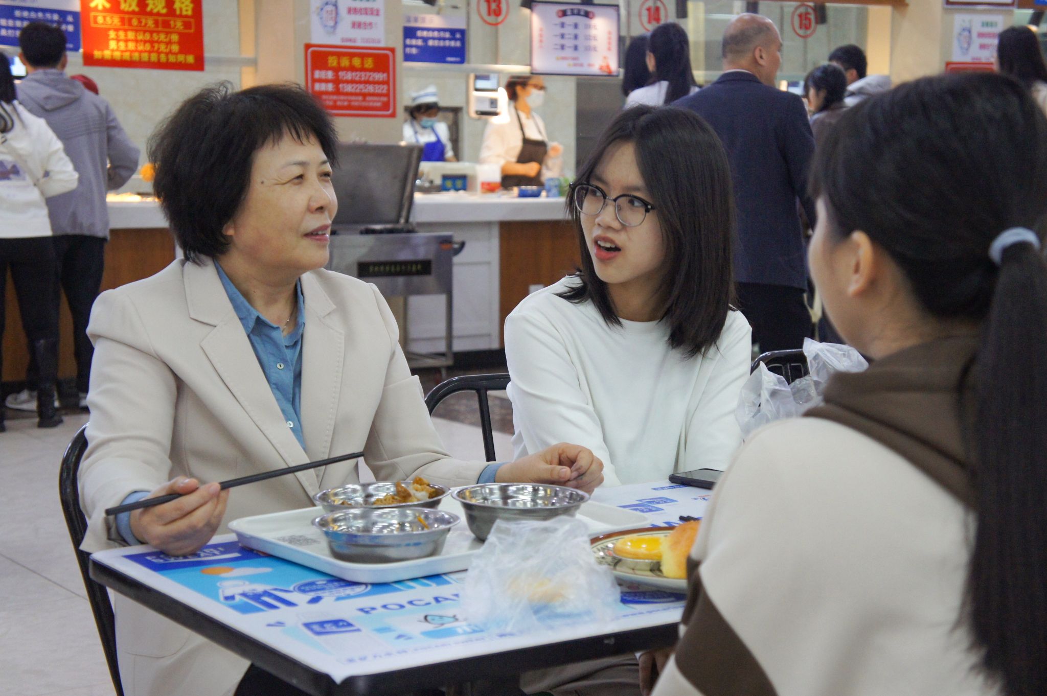 热气腾腾的饭菜和领导殷切的问候让同学们在这寒意料峭的冬天感受到“家的温暖”,食堂一角充溢着温馨的气氛。“我们不仅感受到了家的温暖,还对人生规划有了新的思考,未来我也将会谨遵领导们的教诲,努力成长为奋发有为的有志青年。”22级文学与传媒学院周家旋同学表示。“领导们很亲切,为我们排忧解难、答疑解惑,让人十分暖心。”22级物理科学与技术学院的陈堞欣表示。