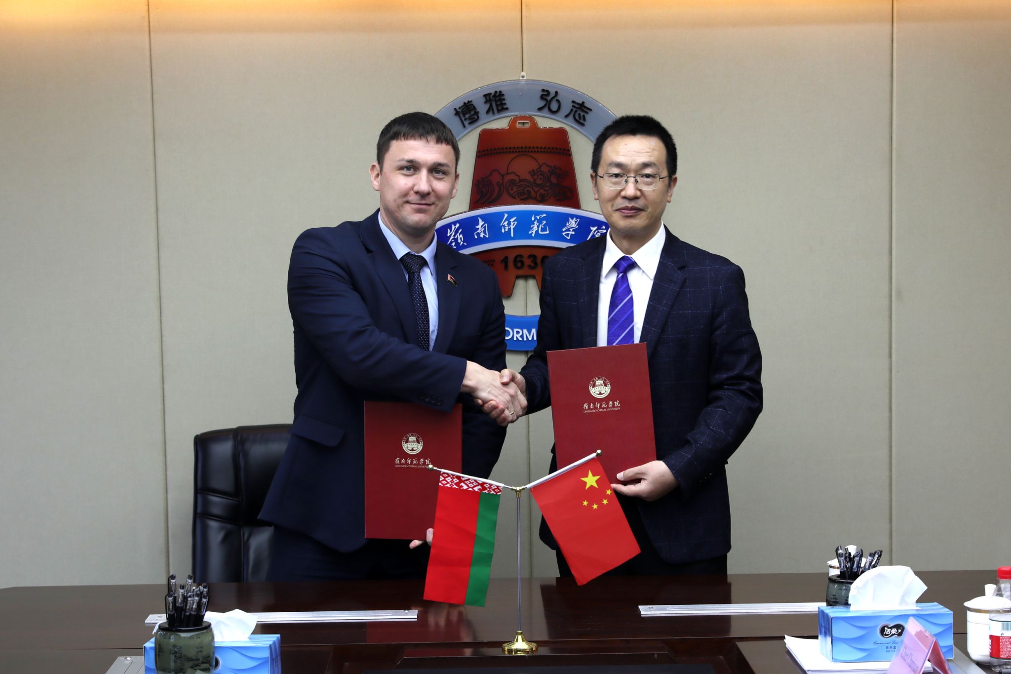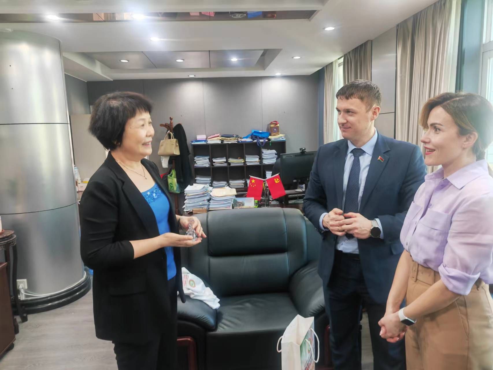 金义富对白方贵宾莅校交流表达了热烈欢迎。表示学校始终高度重视白俄罗斯国立体育大学孔子学院的发展,主动担当、全力支持该院建设,8年以来双方合作的孔子学院累计注册学员达4000余人次,举办文化活动100余场次,受众达10余万人次,办学规模逐步扩大,办学质量稳步提高,影响力持续增强,办学成果丰硕,受到社会各界的广泛支持和关注。学校将继续支持该院的发展,力争将其建设成为高质量、高水平、特色鲜明的优秀孔子学院。金义富希望两校就以下方面持续加强与拓展合作:一是联合举办学术会议,加强孔子学院的学术发展;二是探索建立常规性体育科研合作机制,加强体育科研方面的合作;三是推进孔子学院夏令营与冬令营项目,开展丰富多彩的来华文化活动;四是推进孔子学院建设我校国际中文教育实习基地;五是持续推进师生互访,共享两校的教育理念与教育资源。