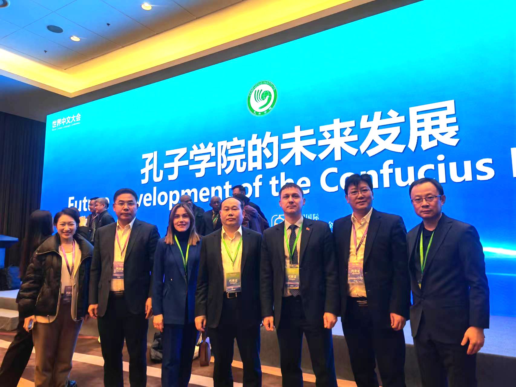 岭师新闻中心讯:12月7日-9日,由教育部中外语言交流合作中心举办的2023年世界中文大会在北京召开。应我校邀请,白俄罗斯国立体育大学第一副校长克利诺夫·弗拉基米尔·弗拉基米罗维奇、大学孔子学院白方院长科斯捷耶娃·娜塔莉亚·弗拉基米罗夫娜、中方院长宋鹏前往北京与我校阳爱民校长一行共同出席了该次盛会。