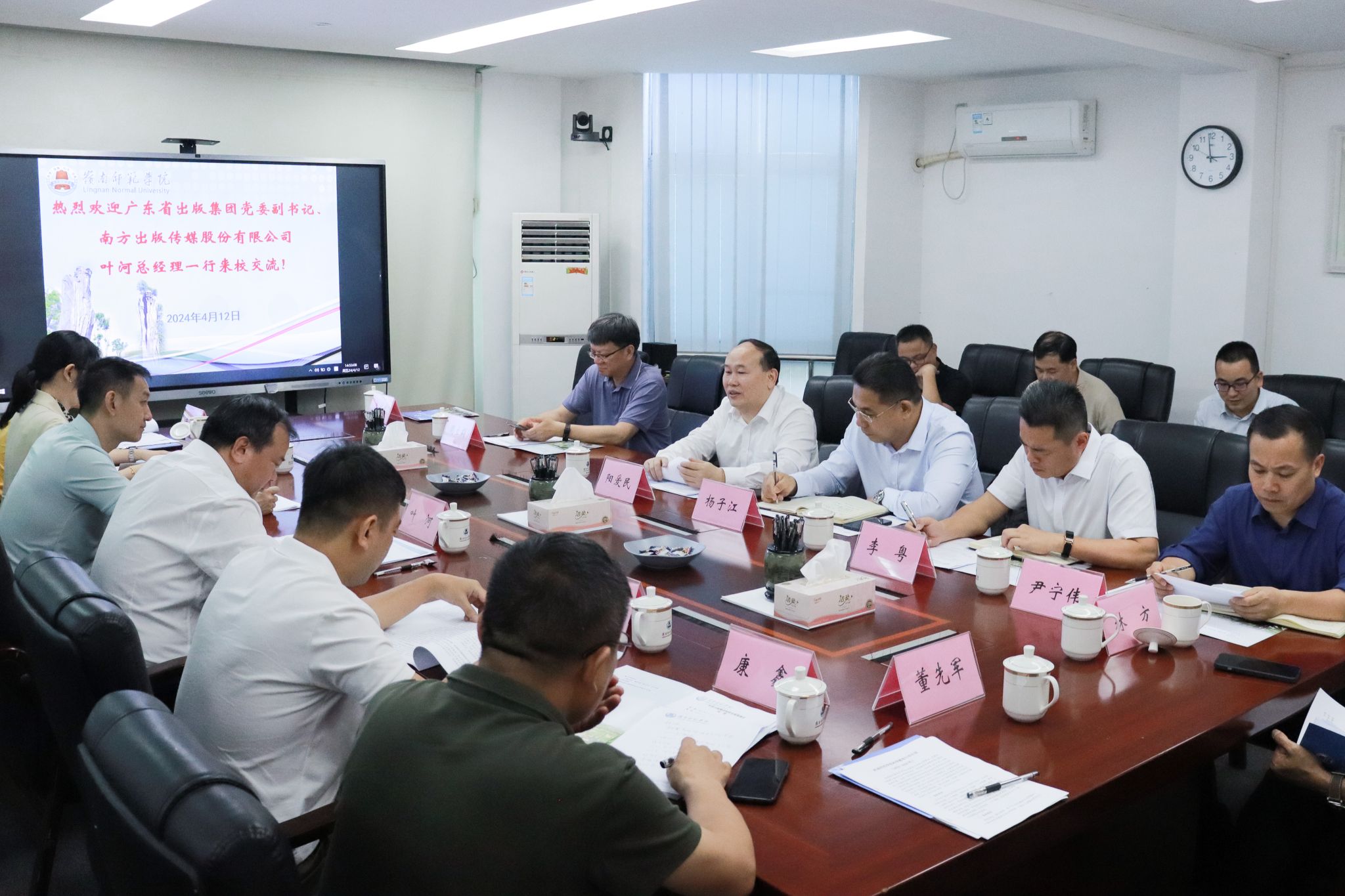 岭师新闻中心讯:4月12日下午,广东省出版集团有限公司党委副书记、南方出版传媒股份有限公司总经理叶河一行莅临学校进行交流座谈,学校校长阳爱民主持会议。