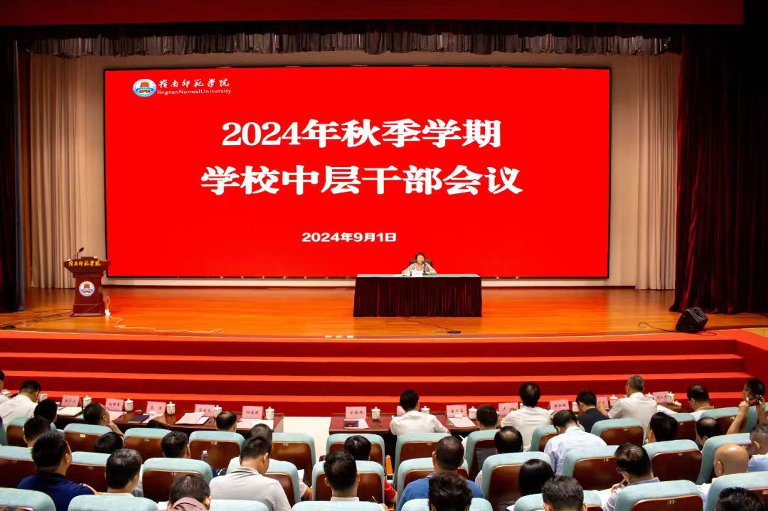 岭师新闻中心讯:9月1日,学校在音乐厅召开2024年秋季学期中层干部会议。党委书记兰艳泽主持会议并作总结讲话,党委副书记、校长阳爱民总结上半年工作、部署安排下半年工作任务。学校党委副书记林晓敏,副校长苏古发、金义富、吴涛,华南师范大学帮扶队队长卢勃出席会议。
