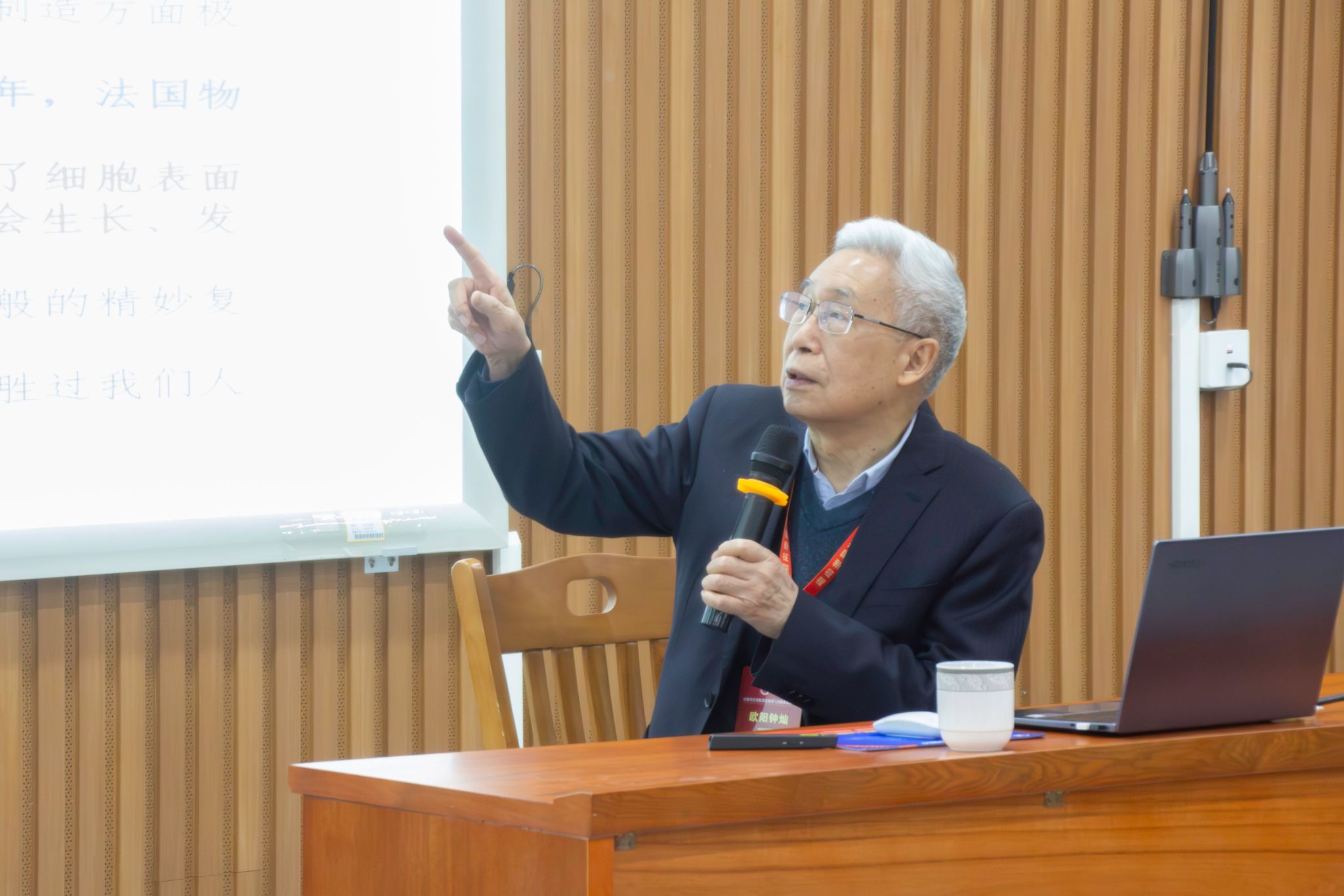欧阳钟灿以《从液晶显示到液晶生物膜理论》为题,通过一幅幅图片、一段段文字深入浅出地介绍了液体是可以流动的,晶体的原子却是固定在各自独立的空间内,这些性质似乎相互对立,但液晶却能两者都有。液晶与光的相互作用方式非同寻常且灵活,我们可以用它来制作动态、多彩的显示器。在生物领域,围绕生物体细胞的膜也具有液晶态。它们可以响应化学信号而改变形状,在细胞生长,发育和繁殖领域具有不可替代的重要作用。精彩的报告分享,拓宽了大家的视野,也激发了学生对科学研究的热情。