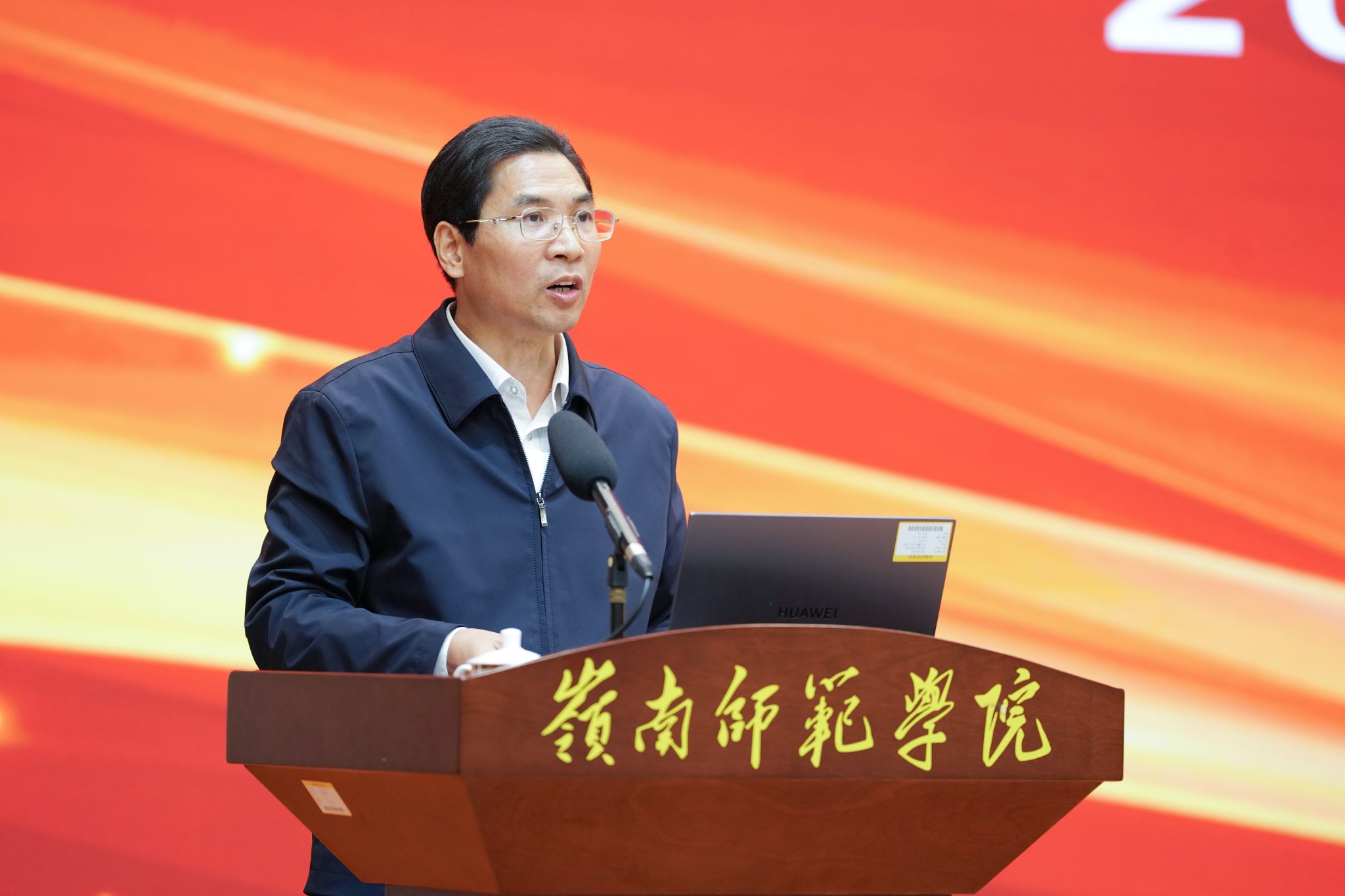 “获批硕士学位授予权,通过教育部新一轮本科教育教学审核评估,湖光校区正式投入使用,高质量承办2024中国国际大学生创新大赛广东省分赛,圆满举办学校师范教育120周年系列活动……”阳爱民在报告中全面总结回顾了学校2024年工作,指出过去一年坚定不移坚持党对学校工作的全面领导,党的建设取得新成效;坚定不移推进内涵式发展,办学整体实力实现新跨越;坚定不移深化综合改革,治理效能实现新提升;坚定不移优化办学条件,校园风貌发生新变化;坚定不移落实“百千万工程”,干事创业体现新担当;坚定不移践行以人民为中心的发展思想,师生凝聚力得到新提升。