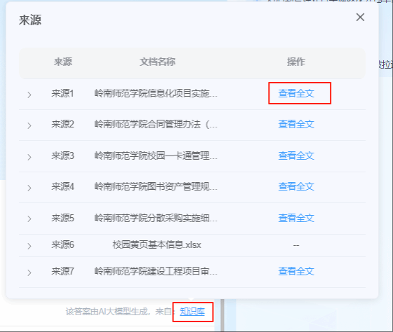 选择点击知识库可以查看来源文档