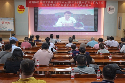 岭师新闻中心讯:5月30日下午,学校党委理论学习中心组在国际会议厅召开2022年第四次集中学习(扩大)会,专题学习传达贯彻省第十三次党代会精神。党委书记兰艳泽主持会议并传达学习省第十三次党代会精神,校长阳爱民、副校长苏古发分别结合工作实际谈学习贯彻体会。党委副书记黄达海、副校长戴黍、金义富,华南师范大学帮扶队队长卢勃,党委常委、宣传部部长刘坤章出席会议。