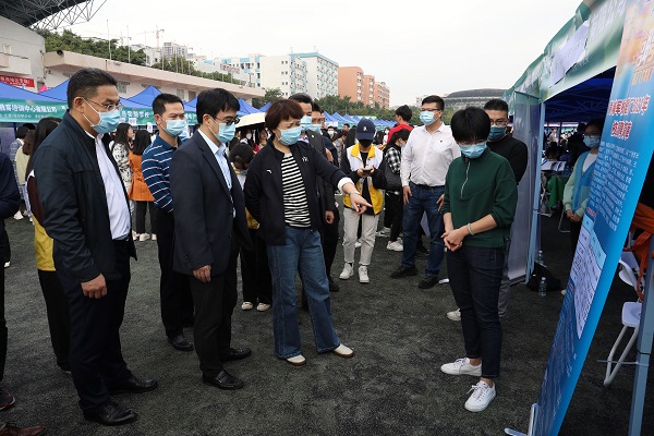 岭师新闻中心讯:就业是人才“落地生根、才尽其用”的平台。12月11日,由广东省教育厅主办、岭南师范学院承办的广东省2022届普通高校毕业生系列供需见面活动在学校田径场顺利举行,该活动为师范类粤西地区专场。本次供需会共吸纳了300多家企事业单位到场招贤纳才,涉及教育、运输、制造等多个行业,需求人数超过了2.5万。校长兰艳泽、副校长戴黍深入见面会现场调研指导。