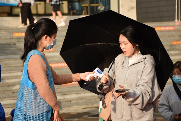 学生志愿者按照疫情防控要求协助维护活动现场秩序