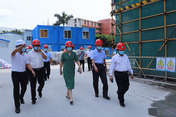“项目启动至今,学校对十三期学生公寓项目总体比较满意。”兰艳泽感谢施工方对这一项目的辛苦付出,指出为保证项目8月16日按期完工,施工方要倒排工期,科学谋划;要考虑极端天气如台风等影响工期的因素,增加施工人员,尽量把工期往前赶;要注意施工安全,越是到了最后阶段,在增加施工人员的情况下越要注意施工安全。兰艳泽希望施工方争分夺秒、夜以继日,在保证质量的前提下将第十三期学生公寓工程如期完工。