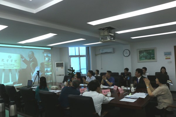 Repkin)、我校校长兰艳泽以及来自白俄罗斯国立大学孔子学院、白俄罗斯国立技术大学孔子学院、白俄罗斯国立语言大学孔子学院、白俄罗斯戈梅利大学孔子学院、白俄罗斯布列斯特大学孔子学院、白俄罗斯维杰布斯克第44中孔子课堂、意大利帕多瓦大学孔子学院的代表齐聚云端,共襄盛典,中国国际中文教育基金会副理事长、秘书长赵灵山也发来了贺信。我校在二号会议室设分会场,校长兰艳泽、孔子学院中方理事会成员单位主要负责人和候任院长参会。