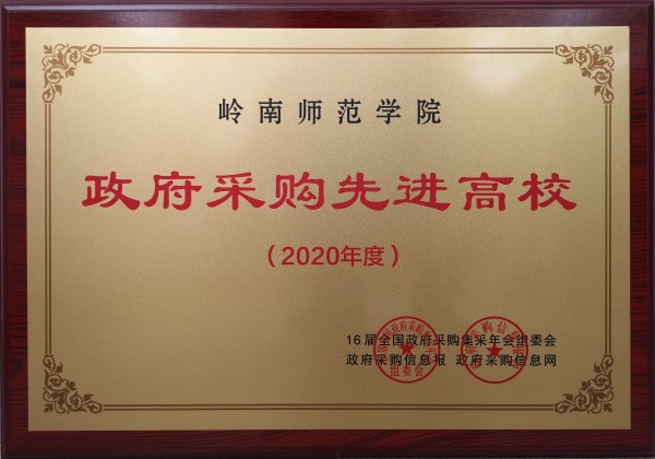 3月18日,从第16届全国政府采购集采年会上传来喜讯,我校与清华大学、北京大学、中国人民大学等30所高校荣获“2020年度政府采购先进高校”称号,这是学校继获得“2020年广东省教育系统政府采购工作先进集体”后再次斩获国字号荣誉。