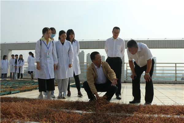 专家组进入学校创新创业园区实地考察(肖凌 摄)