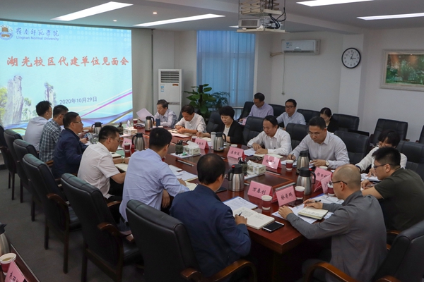 岭师新闻中心讯:10月29日,岭南师范学院新校区(湖光校区)代建单位见面会在二号会议室召开,岭南师院校长兰艳泽、副校长苏古发、广东省建筑工程监理有限公司董事长黄伟中参加会议,就湖光校区首期建设项目代建工作推进进行深入交流。苏古发主持会议。