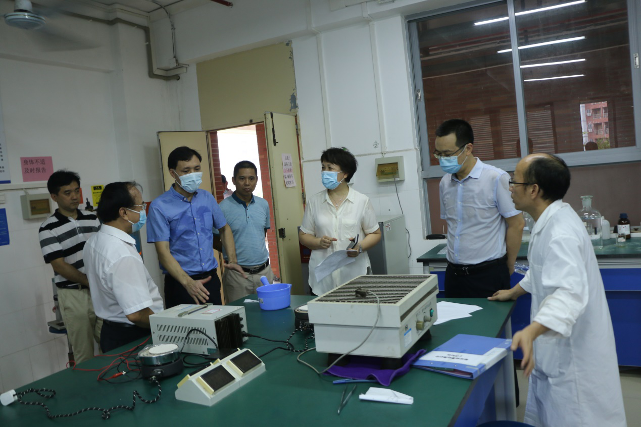当天上午,兰艳泽与学校党委黄达海副书记、苏古发副校长、金义富副校长一同去到校园东大门、培训公寓(健康观察区)、门诊部、鸿园餐厅、尚雅1苑(搬迁宿舍)、第四教学楼化学实验室等重点场所,实地检查开学前疫情防控准备工作。