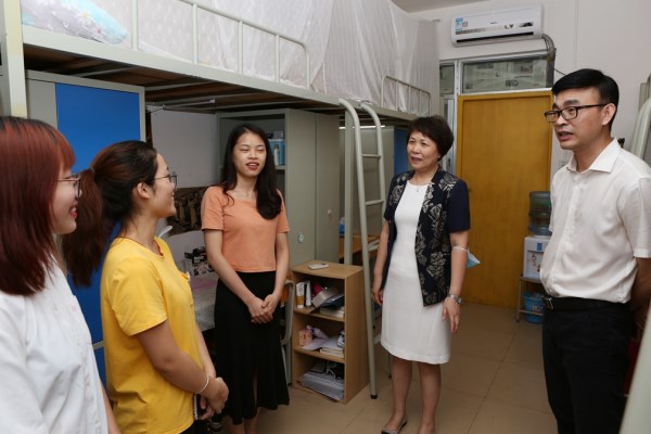 岭师新闻中心讯:“你们身上都烙着岭南师范学院的烙印,一言一行都代表着岭师的形象。希望你们毕业后,在社会各个领域做出成绩和贡献,为母校添光彩。”7月6日下午,校长兰艳泽、校党委副书记黄达海走进毕业生宿舍,看望即将离校的毕业生,向毕业生们再次送上师长的祝福和叮嘱。